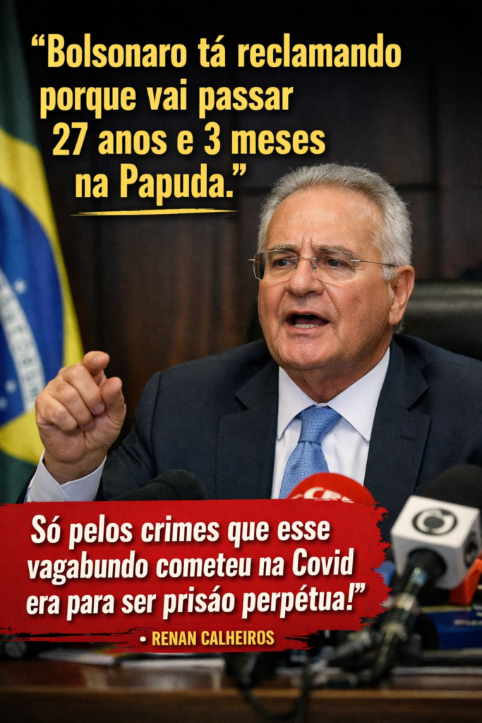 Renan Calheiros foi cirúrgico ao escancarar a hipocrisia de Bolsonaro. O ex-presidente agora reclama de uma possível pena de 27 anos e 3 meses na Papuda, como se fosse perseguição política. Mas a verdade é simples: é consequência dos crimes cometidos, especialmente durante a pandemia da Covid-19.